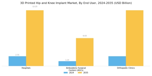 Cost considerations play a pivotal role in the Global 3D Printed Hip and Knee Implant Market Industry. The production of 3D printed implants can be more cost-effective compared to traditional manufacturing methods, primarily due to reduced material waste and shorter production times. Hospitals and clinics are increasingly recognizing the financial benefits of adopting 3D printing technology, which can lead to lower overall healthcare costs. This trend is likely to contribute to a compound annual growth rate of 17.45% from 2025 to 2035, as more healthcare providers seek to optimize their budgets while improving patient outcomes through advanced implant technologies.