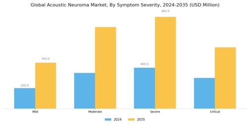 The Global Acoustic Neuroma Market Industry is experiencing growth due to the rising incidence of acoustic neuroma cases worldwide. Reports indicate that the prevalence of this benign tumor is increasing, with estimates suggesting that approximately 1 in 100,000 individuals are diagnosed annually. This growing patient population necessitates enhanced diagnostic and therapeutic options, thereby driving demand within the market. As awareness of acoustic neuroma improves, more individuals seek medical attention, further contributing to market expansion. The projected market value of 1250 USD Million in 2024 reflects this trend, highlighting the urgent need for effective management strategies in the Global Acoustic Neuroma Market Industry.