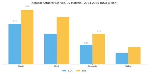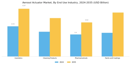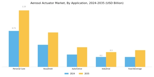 Regulatory frameworks promoting environmentally friendly products are influencing the Global Aerosol Actuator Market Industry. Governments worldwide are implementing stricter regulations regarding volatile organic compounds and other harmful substances in aerosol products. This regulatory environment encourages manufacturers to innovate and develop eco-friendly actuators that utilize sustainable materials and propellants. As consumers become more environmentally conscious, the demand for green products is expected to rise. Consequently, manufacturers who comply with these regulations and prioritize sustainability may gain a competitive edge in the market, fostering growth and expanding their market share.