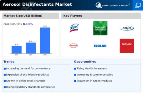 Key trends driving the Aerosol Disinfectants Market include heightened hygiene awareness and innovation in product formulations.