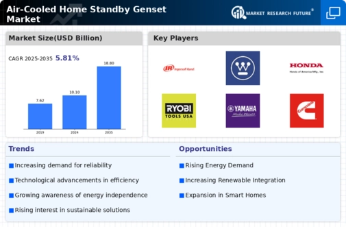 The integration of smart home technologies is emerging as a significant driver for the Global Air-Cooled Home Standby Genset Market Industry. As consumers increasingly adopt smart home systems, the demand for compatible backup power solutions is likely to grow. Air-cooled standby generators can be integrated into smart home networks, allowing for remote monitoring and control. This synergy enhances convenience and reliability for homeowners, making these systems more appealing. The ongoing trend towards home automation suggests that the market for air-cooled gensets will continue to expand as consumers seek seamless integration with their smart home ecosystems.