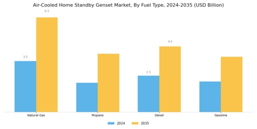 Technological innovations play a pivotal role in shaping the Global Air-Cooled Home Standby Genset Market Industry. Recent advancements in generator efficiency and fuel consumption have made these systems more appealing to consumers. Modern air-cooled gensets are designed to operate with lower emissions and enhanced fuel efficiency, aligning with global sustainability goals. As a result, homeowners are increasingly inclined to invest in these advanced systems. The anticipated growth of the market, projected to reach 18.8 USD Billion by 2035, suggests that ongoing technological improvements will continue to drive consumer interest and adoption.