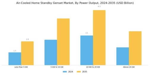 Government initiatives aimed at promoting renewable energy integration are likely to impact the Global Air-Cooled Home Standby Genset Market Industry positively. Many governments are offering incentives for homeowners to invest in renewable energy systems, which often include the installation of standby generators as complementary solutions. These incentives can take the form of tax credits, rebates, or grants, making the initial investment more attractive. As homeowners increasingly adopt renewable energy sources, the demand for air-cooled standby gensets is expected to rise, further contributing to market growth in the coming years.