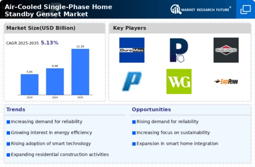 The Global Air-Cooled Single-Phase Home Standby Genset Market Industry benefits from the increasing pace of residential construction activities. As new homes are built, the integration of standby generators is becoming a standard consideration for homeowners and builders alike. This trend is particularly evident in suburban and rural areas, where power reliability is often a concern. The expansion of residential developments is expected to drive demand for standby generators, contributing to the overall market growth. With the market projected to reach 11.2 USD Billion by 2035, the construction sector plays a crucial role in shaping future demand.