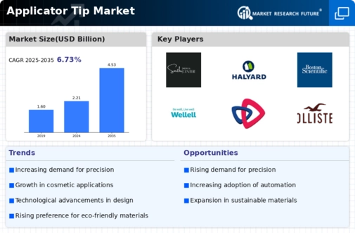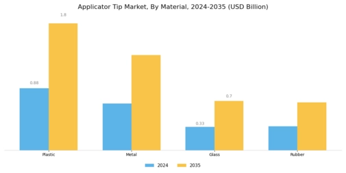 Technological innovations play a pivotal role in shaping the Global Applicator Tip Market Industry. The introduction of new materials and manufacturing techniques has led to the development of applicator tips that offer improved performance and user experience. For example, the integration of smart technologies into applicator designs allows for real-time monitoring of product usage, which could enhance consumer satisfaction. These advancements are likely to contribute to the market's growth, with projections indicating a rise to 4.53 USD Billion by 2035, showcasing the impact of technology on applicator tip functionality.