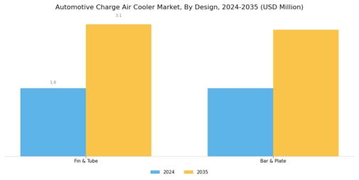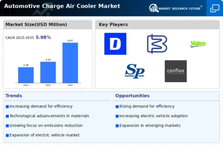Technological advancements significantly influence the Global Automotive Charge Air Cooler Market Industry, as innovations in materials and design enhance the performance of charge air coolers. The introduction of lightweight materials, such as aluminum and advanced composites, contributes to improved thermal efficiency and reduced weight, which are critical for modern vehicles. Furthermore, the integration of smart technologies, such as sensors and electronic controls, allows for better monitoring and optimization of air intake temperatures. These advancements not only improve vehicle performance but also align with the growing consumer preference for high-performance vehicles, thereby driving market growth.