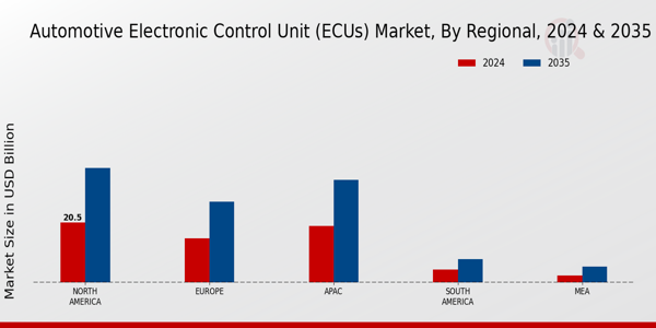 The Automotive Electronic Control Unit Market (ECUs) Market is heavily influenced by stringent regulatory compliance and safety standards. Governments worldwide are implementing regulations aimed at enhancing vehicle safety and reducing emissions. As a result, automakers are increasingly relying on ECUs to ensure compliance with these regulations. For instance, the introduction of advanced safety features, such as automatic emergency braking and electronic stability control, necessitates the integration of sophisticated ECUs. Market analysis indicates that the demand for safety-related ECUs is expected to grow significantly, driven by regulatory pressures. This trend underscores the critical role of ECUs in meeting safety and environmental standards within the Automotive Electronic Control Unit Market (ECUs) Market.