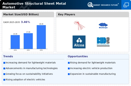 Technological advancements in manufacturing processes significantly influence the Global Automotive Structural Sheet Metal Market Industry. Innovations such as laser cutting, robotic welding, and automated assembly lines enhance production efficiency and precision. These technologies not only reduce waste but also improve the overall quality of automotive components. As manufacturers strive to meet increasing consumer expectations for durability and performance, the integration of advanced manufacturing techniques becomes essential. The anticipated growth of the market to 26.3 USD Billion by 2035 underscores the importance of these advancements in shaping the future of automotive production.