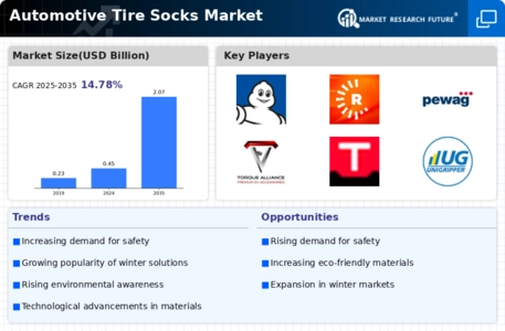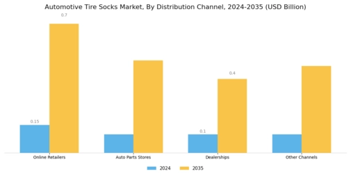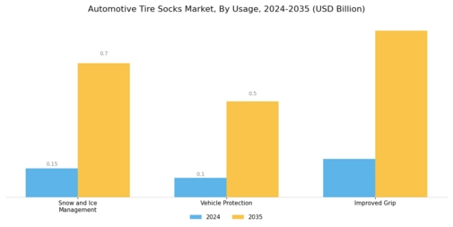 The Global Automotive Tire Socks Market Industry benefits from ongoing technological advancements in material science. Innovations in fabric technology have led to the development of lighter, stronger, and more durable tire socks. These advancements enhance the performance of tire socks, making them more appealing to consumers. For instance, the introduction of high-performance synthetic fibers has improved the traction and longevity of tire socks. As manufacturers continue to innovate, the market is expected to expand significantly, with projections indicating a market size of 2.07 USD Billion by 2035. This growth reflects the industry's adaptability to consumer needs and technological progress.