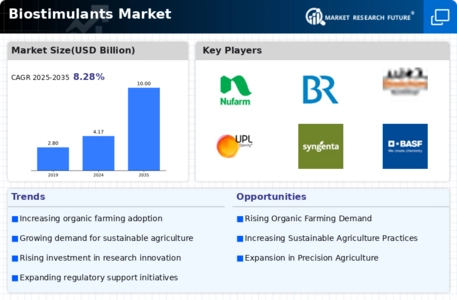 The Global Biostimulants Industry benefits from supportive regulatory frameworks and policy initiatives aimed at promoting sustainable agricultural practices. Governments worldwide are increasingly recognizing the potential of biostimulants to enhance crop productivity while minimizing environmental impact. For instance, various countries have established guidelines for the registration and use of biostimulants, facilitating market entry for innovative products. This regulatory support not only fosters research and development but also encourages investment in the biostimulant sector. As a result, the industry is poised for growth, with projections indicating a market value of 10 USD Billion by 2035, driven by favorable policies.