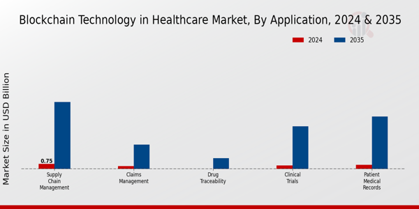 As per MRFR analysis, the Blockchain Technology in Healthcare Market was estimated at 5.46 USD Billion in 2024. The Blockchain Technology in Healthcare industry is projected to grow from 9.19 USD Billion in 2025 to 1677.81 USD Billion by 2035, exhibiting a compound annual growth rate (CAGR) of 68.32 during the forecast period 2025 - 2035.