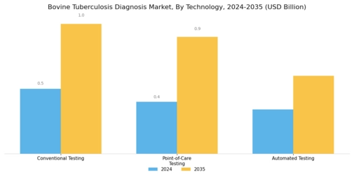 Technological innovations play a crucial role in shaping the Global Bovine Tuberculosis Diagnosis Market Industry. The development of rapid and accurate diagnostic tests, such as molecular techniques and immunological assays, enhances disease detection capabilities. These advancements not only improve the speed of diagnosis but also increase the reliability of results, which is vital for effective disease management. For instance, the introduction of portable diagnostic devices allows for on-site testing, facilitating quicker decision-making. As the market evolves, these technological improvements are expected to contribute significantly to the projected growth, with a compound annual growth rate of 6.58% anticipated from 2025 to 2035.