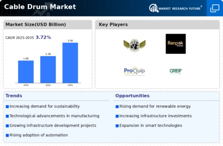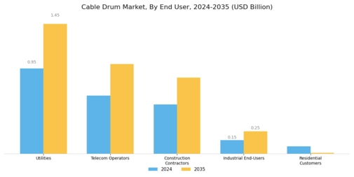 The Global Cable Drum Market is projected to grow from 2.38 USD Billion in 2024 to 3.55 USD Billion by 2035.