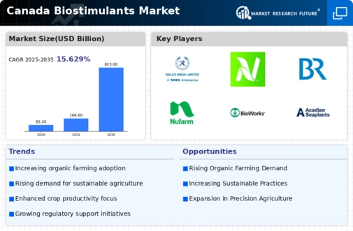 The biostimulants market in Canada is characterized by a dynamic competitive landscape, driven by increasing agricultural productivity demands and a growing emphasis on sustainable farming practices. Key players such as BASF SE (Germany), Nutrien Ltd (Canada), and Syngenta AG (Switzerland) are actively shaping the market through innovative product offerings and strategic partnerships. BASF SE (Germany) focuses on enhancing its biostimulant portfolio, leveraging its extensive research capabilities to develop solutions that improve crop resilience and yield. Nutrien Ltd (Canada) emphasizes regional expansion and digital transformation, integrating advanced technologies into its operations to optimize supply chains and enhance customer engagement. Syngenta AG (Switzerland) is committed to sustainability, investing in eco-friendly biostimulants that align with global environmental goals. Collectively, these strategies foster a competitive environment that prioritizes innovation and sustainability.
