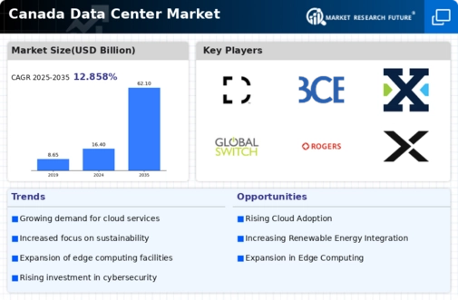 The rollout of 5G networks is poised to be a transformative driver for the Canada data center market. With the potential for significantly faster data transmission speeds and lower latency, 5G technology is expected to enhance the performance of data centers. In 2025, it was estimated that 5G adoption would increase data traffic by over 50% in urban areas. This surge in data demand necessitates the expansion of data center capabilities to support the growing number of connected devices and applications. Consequently, data centers are likely to invest in infrastructure upgrades to accommodate the anticipated influx of data traffic.