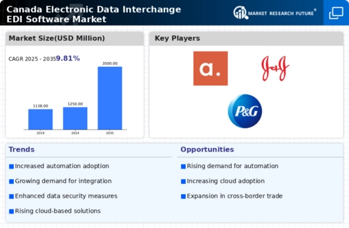 The Canada electronic data interchange software market is experiencing a notable surge in demand for enhanced supply chain efficiency. Businesses are increasingly recognizing the importance of streamlined operations, which can be achieved through effective EDI solutions. According to recent data, approximately 70% of Canadian companies are prioritizing supply chain optimization, leading to a greater reliance on EDI software. This trend is driven by the need to reduce operational costs and improve transaction speed. As organizations seek to enhance their competitive edge, the adoption of EDI systems is likely to become a cornerstone of their supply chain strategies. Consequently, the market for electronic data interchange software in Canada is poised for substantial growth as companies invest in technologies that facilitate seamless communication and data exchange across their supply chains.