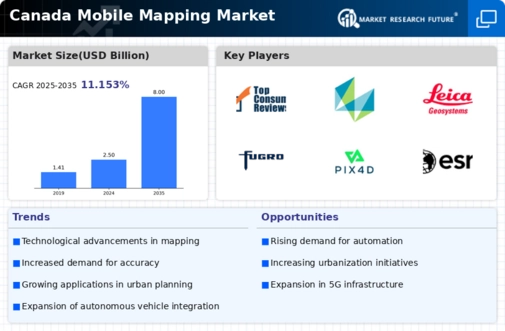 In November 2024, Canadian sustainable asset management company Can-Explore formed a strategic partnership with Jakarto, a leader in 3D mapping and geospatial data management, to enhance data collection and certification for infrastructure projects using advanced mobile mapping technology.In early 2025, major mobile mapping firms introduced innovative lightweight and faster scanning 3D mobile mapping systems integrated with advanced sensors, improving data accuracy and efficiency for urban planning and infrastructure management in Canada.