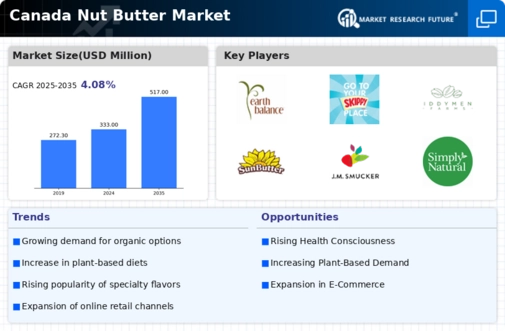 The competitive dynamics within the nut butter market in Canada appear to be shaped by a blend of innovation, sustainability, and strategic partnerships. Key players such as Kraft Heinz (CA), SunButter (CA), and Adams Natural Peanut Butter (CA) are actively redefining their operational focus to capture a larger market share. Kraft Heinz (CA) has been emphasizing product innovation, particularly in the realm of organic and health-oriented nut butters, which aligns with the growing consumer demand for healthier options. SunButter (CA), on the other hand, has positioned itself as a leader in allergen-friendly products, catering to a niche yet expanding segment of consumers with dietary restrictions. Meanwhile, Adams Natural Peanut Butter (CA) has been focusing on transparency in sourcing and production, which resonates with the increasing consumer preference for clean-label products. Collectively, these strategies contribute to a competitive environment that is increasingly characterized by differentiation rather than mere price competition.