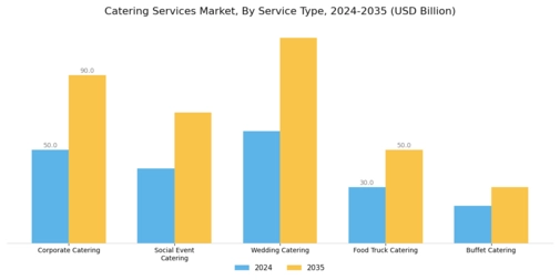 The Global Catering Services Market Industry is poised for substantial growth, with projections indicating a rise from 250 USD Billion in 2024 to 450 USD Billion by 2035. This growth trajectory suggests a robust demand for catering services across various sectors, including corporate, social, and institutional catering. The anticipated CAGR of 5.49% from 2025 to 2035 reflects the industry's resilience and adaptability in meeting evolving consumer preferences. As businesses and individuals increasingly recognize the value of professional catering, the market is likely to expand, driven by innovations in service delivery and menu offerings.
