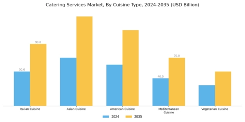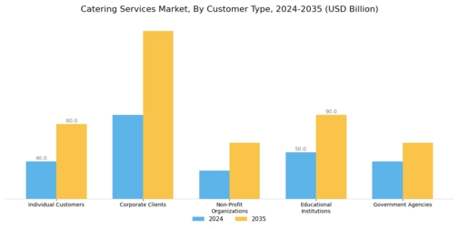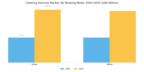 Health-conscious consumers are influencing the Global Catering Services Market Industry as they increasingly seek nutritious and organic food options. Catering companies are adapting their menus to include healthier choices, such as plant-based dishes and locally sourced ingredients. This shift aligns with broader societal trends towards wellness and sustainability, which appear to resonate particularly well with younger demographics. As the market evolves, it is likely that catering services will continue to innovate, offering customized meal plans that cater to specific dietary needs. This focus on health and wellness could contribute to the projected market growth, reaching 450 USD Billion by 2035.