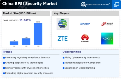 The China BFSI Security Market is characterized by a highly competitive landscape that has evolved significantly over the years due to rapid advances in technology and a growing emphasis on digital transformation across the financial and banking sectors. With increasing incidences of cyber threats and data breaches, financial institutions are more focused on protecting sensitive customer data and ensuring compliance with regulatory standards.