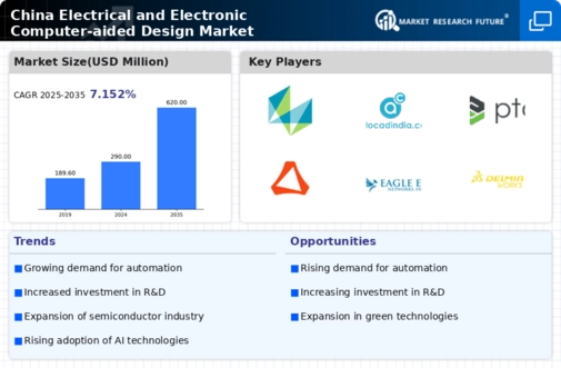 The demand for advanced electronic products in China is a significant driver for the electrical electronic computer aided design market. With the rapid growth of consumer electronics, telecommunications, and automotive sectors, there is an increasing need for sophisticated design tools that can accommodate complex electronic systems. According to recent data, the electronics manufacturing sector in China is projected to reach a market size of over 1 trillion USD by 2026. This surge in demand necessitates the adoption of advanced CAD solutions that can streamline the design process, improve accuracy, and reduce time-to-market. Consequently, companies are increasingly investing in CAD technologies to remain competitive and meet the evolving needs of the market.