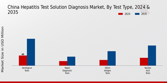 Government initiatives aimed at controlling hepatitis infections play a pivotal role in shaping the hepatitis test-solution-diagnosis market. The Chinese government has allocated substantial funding to enhance healthcare infrastructure and improve access to diagnostic services. For instance, the National Health Commission has launched various programs to promote hepatitis screening and vaccination. These initiatives not only raise awareness but also facilitate the development and distribution of advanced diagnostic tools. As a result, the market is likely to experience increased investment and innovation, leading to the introduction of more efficient testing solutions. The proactive stance of the government in addressing hepatitis is expected to create a conducive environment for market expansion.