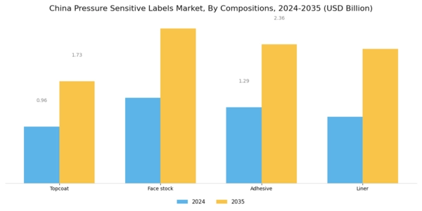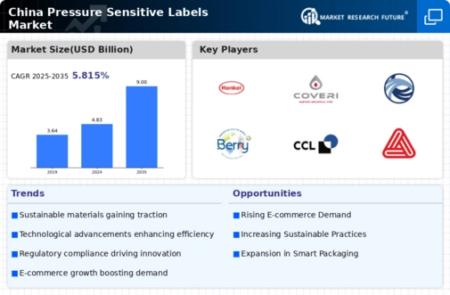 The China Pressure Sensitive Labels Market reflects a dynamic and rapidly evolving industry driven by increasing demand from various sectors, including food and beverage, pharmaceuticals, cosmetics, and logistics. As businesses enhance their branding strategies and prioritize product differentiation, pressure-sensitive labels have become essential for packaging and labeling solutions. The market is characterized by a competitive landscape featuring both global and local players striving to leverage technological advancements and innovative designs to meet consumer preferences. Strong growth is projected in the coming years, supported by a rise in e-commerce activities and retail expansion, thus fostering a robust environment for competitive strategies.