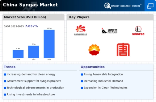 The syngas market in China is characterized by a competitive landscape that is increasingly shaped by innovation, sustainability initiatives, and strategic partnerships. Key players such as China National Petroleum Corporation (CN), Sinopec Limited (CN), and Shenhua Group Corporation Limited (CN) are at the forefront of this dynamic environment. These companies are not only focusing on enhancing their production capabilities but are also investing in cleaner technologies to align with global sustainability goals. Their strategic positioning reflects a commitment to reducing carbon emissions while maintaining operational efficiency, which collectively influences the market's trajectory towards greener alternatives.