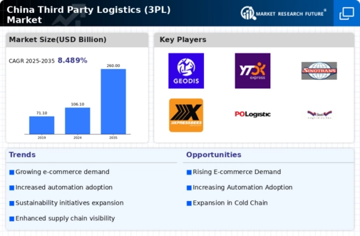 Major e-commerce players such as Alibaba and JD.com are heavily investing in logistics infrastructure to improve delivery speeds and customer satisfaction, thus adding to the demand for third-party logistics services.As the e-commerce sector continues to grow, driven by a large population and increasing internet penetration rates, projections indicate that the demand for third-party logistics services will also surge, significantly contributing to the market's overall growth.