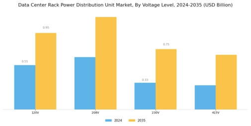The Global Data Center Rack Power Distribution Unit Market is projected to grow significantly from 1.83 USD Billion in 2024 to 5.12 USD Billion by 2035.