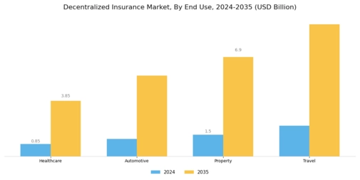Technological advancements in blockchain are propelling the Global Decentralized Insurance Market Industry forward. Innovations in smart contracts and decentralized applications facilitate automated claims processing and risk assessment. These advancements streamline operations, reduce costs, and enhance efficiency, which are critical factors for insurers and consumers alike. As the technology matures, it is likely to attract more participants into the market, potentially driving its growth to 25.43 USD Billion by 2035. The integration of cutting-edge technology appears to be a key driver in reshaping the insurance landscape.
