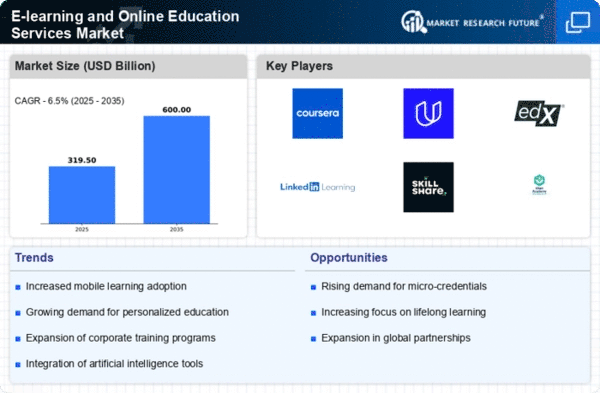 The Middle East and Africa region is gradually developing its E-learning and Online Education Services Market, with a market size of 15.0 in 2024. The growth is driven by increasing smartphone penetration and a young population eager for educational opportunities. Governments are recognizing the importance of digital education, leading to initiatives aimed at enhancing online learning access and quality across the region.