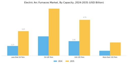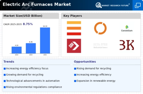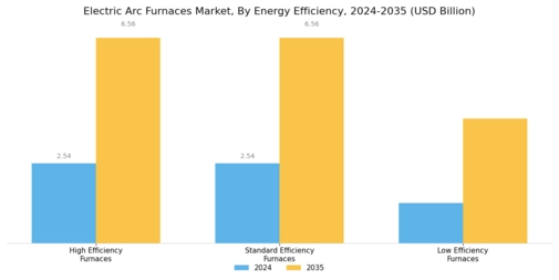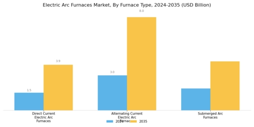 The Global Electric Arc Furnaces Market is projected to grow significantly from 6.95 USD Billion in 2024 to 17.48 USD Billion by 2035.