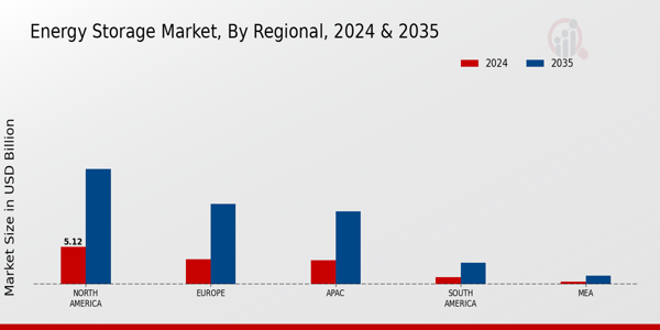 The Global Energy Storage Market Industry is characterized by dynamic trends and projections that indicate substantial growth in the coming years. With a market value of 13.2 USD Billion in 2024, the industry is on a trajectory towards reaching 40 USD Billion by 2035. This growth is driven by various factors, including technological advancements, government policies, and increasing demand for renewable energy. The anticipated CAGR of 10.58% from 2025 to 2035 suggests a robust expansion phase, highlighting the importance of energy storage in the global energy landscape. Charts illustrating these trends and projections can provide valuable insights into the market's future trajectory.