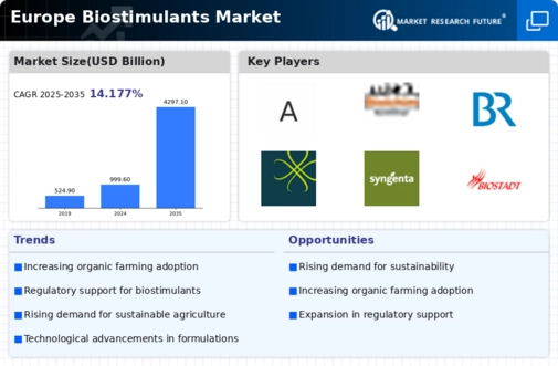 The Europe Biostimulants Market is characterized by a dynamic landscape where competition is driven by innovation in agricultural practices and growing awareness of sustainable farming. The market has seen a significant influx of players striving to offer diverse product portfolios, targeting various agricultural segments, including crops, fruits, and vegetables. As farmers increasingly seek methods to enhance soil fertility and crop productivity without compromising environmental quality, biostimulants have emerged as a vital segment.