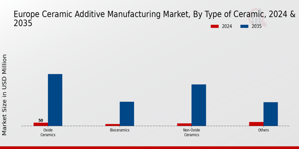 With a 20.0% market share, Russia's ceramic additive manufacturing market is valued at about €600 million. Key growth drivers include strategic investments in technology and a focus on local production capabilities. Demand is increasing in sectors like defense and construction, supported by government initiatives aimed at enhancing domestic manufacturing. The regulatory landscape is evolving, encouraging innovation and investment in advanced manufacturing technologies.