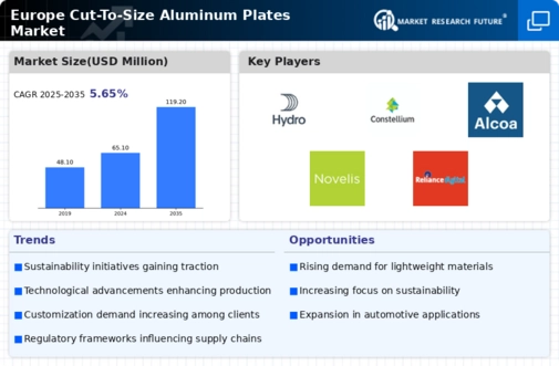 The growth of the automotive industry is a significant driver for the Europe Aluminum Plate Market, as manufacturers increasingly adopt aluminum to enhance vehicle performance and fuel efficiency. The shift towards lightweight materials in vehicle design is driven by stringent emissions regulations and consumer demand for more efficient vehicles. According to industry reports, the use of aluminum in automotive applications is projected to rise, with aluminum plates being utilized in various components such as body panels and structural parts. This trend is further supported by the European automotive sector's commitment to sustainability, as aluminum is fully recyclable. Consequently, the expansion of the automotive industry is likely to propel the demand for aluminum plates, thereby positively influencing the Europe Aluminum Plate Market.