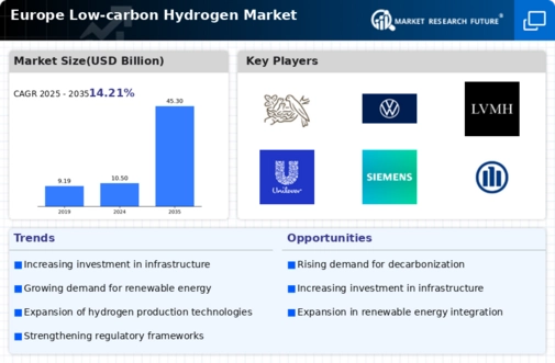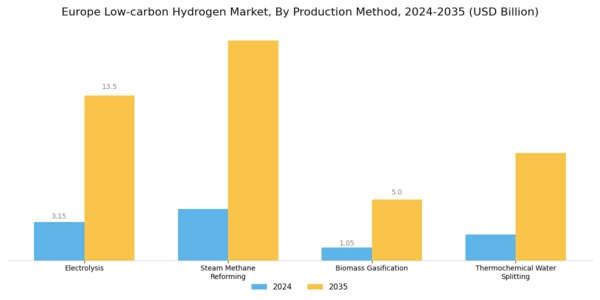 The Europe Low-carbon Hydrogen market is poised for substantial growth, projected to reach 45.3 USD Billion by 2035 from a base of 10.5 USD Billion in 2024.