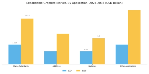 The Global Expandable Graphite Market Industry is significantly influenced by advancements in battery technology, particularly in electric vehicles and renewable energy storage systems. Expandable graphite serves as an efficient conductive additive in lithium-ion batteries, enhancing their performance and longevity. As the global shift towards sustainable energy solutions accelerates, the demand for high-performance batteries is expected to rise. This trend is likely to contribute to the market's expansion, with projections indicating a growth to 9.0 USD Billion by 2035. The integration of expandable graphite in battery applications underscores its critical role in the evolving energy landscape.