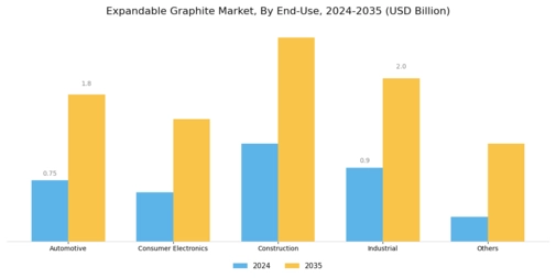 The Global Expandable Graphite Market Industry benefits from the increasing applications of expandable graphite in the electronics sector. Its unique properties, such as thermal conductivity and electrical conductivity, make it an ideal material for heat management in electronic devices. As consumer electronics continue to evolve, manufacturers seek materials that can enhance device performance while ensuring safety. The growing trend of miniaturization in electronics further drives the demand for expandable graphite, as it can be incorporated into smaller components. This trend suggests a promising future for the Global Expandable Graphite Market Industry as it adapts to the needs of the electronics market.