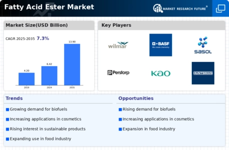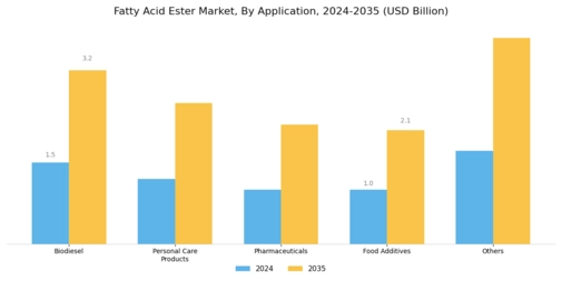 The increasing global emphasis on renewable energy sources is driving the demand for biofuels, which often utilize fatty acid esters as key components. The Global Fatty Acid Ester Market Industry is witnessing a surge in applications within biodiesel production, as these esters serve as effective alternatives to traditional fossil fuels. As nations strive to meet sustainability goals, the market is projected to reach 6.42 USD Billion in 2024, reflecting a robust interest in environmentally friendly energy solutions. This trend is likely to continue, with the industry adapting to regulatory frameworks that favor biofuel usage, thereby enhancing the overall market landscape.