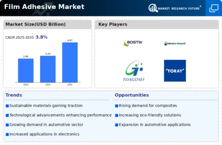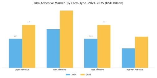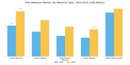 Technological innovations play a crucial role in shaping the Global Film Adhesive Market Industry. The development of high-performance film adhesives with enhanced properties, such as improved temperature resistance and chemical stability, caters to diverse applications across industries. For instance, advancements in polymer chemistry have led to the creation of adhesives that bond dissimilar materials effectively. This evolution not only meets the stringent requirements of industries like aerospace and electronics but also positions the market for sustained growth. As the industry evolves, it is likely that these innovations will drive the market towards an estimated value of 4.87 USD Billion by 2035.