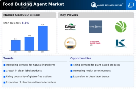 The increasing consumer preference for convenience foods is a primary driver of the Global Food Bulking Agent Market Industry. As lifestyles become busier, there is a notable shift towards processed foods that require bulking agents for texture and stability. This trend is expected to contribute to the market's growth, with the industry projected to reach 2.76 USD Billion in 2024. Bulking agents such as maltodextrin and modified starches are commonly used in these products, enhancing mouthfeel and improving shelf life. The demand for ready-to-eat meals and snacks is likely to bolster this sector further, indicating a robust trajectory for the market.