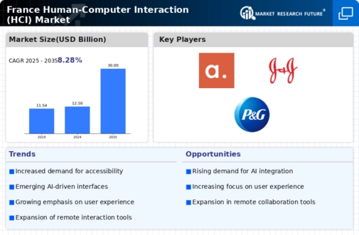 The Global France Human-Computer Interaction (HCI) Market Industry is witnessing growth fueled by the increasing reliance on remote work and collaboration tools. As businesses adapt to flexible work environments, the demand for effective HCI solutions that facilitate communication and collaboration has surged. This trend is reflected in the market's projected compound annual growth rate of 8.28% from 2025 to 2035. Companies are investing in platforms that enhance user interaction, ensuring seamless connectivity and productivity. The emphasis on user-friendly interfaces in these tools is crucial for maintaining engagement and efficiency among remote teams.