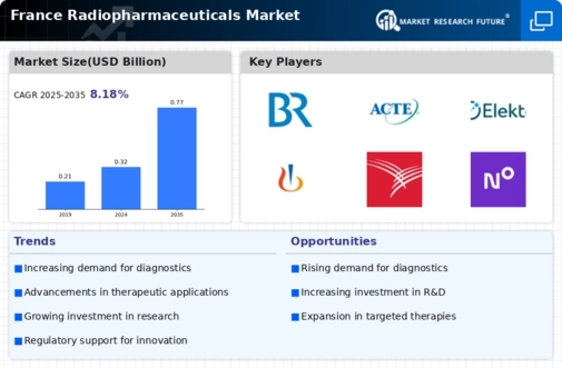 Investment in healthcare infrastructure in France is a significant driver for the radiopharmaceuticals market. The French government has committed to enhancing healthcare facilities, which includes upgrading diagnostic imaging capabilities. This investment is likely to lead to increased adoption of radiopharmaceuticals, as hospitals and clinics seek to improve their diagnostic and therapeutic offerings. Furthermore, collaborations between public and private sectors are emerging, focusing on the development of advanced radiopharmaceuticals. As healthcare infrastructure continues to evolve, the demand for innovative radiopharmaceutical solutions is expected to rise, contributing to market growth.