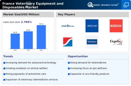 The expansion of veterinary clinics and services across France is a significant driver of the veterinary equipment disposables market. As the number of veterinary practices increases, so does the demand for disposable products that facilitate efficient and safe procedures. Recent statistics indicate that the number of registered veterinary clinics in France has grown by approximately 15% over the past five years. This growth is indicative of a broader trend towards accessible veterinary care, which in turn fuels the need for disposable equipment. Consequently, the market is poised for continued growth as more clinics seek to enhance their service offerings through the use of high-quality disposables.