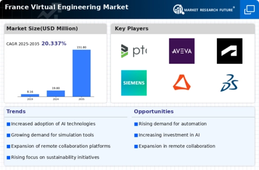 The virtual engineering market in France is characterized by a dynamic competitive landscape, driven by rapid technological advancements and increasing demand for digital solutions across various sectors. Key players such as Dassault Systèmes (France), Siemens (Germany), and Ansys (USA) are at the forefront, leveraging their expertise in simulation and modeling to enhance product development processes. These companies are strategically positioned to capitalize on the growing trend of digital transformation, with a focus on innovation and partnerships that foster collaborative engineering solutions. Their collective efforts contribute to a moderately fragmented market structure, where competition is intensified by the presence of both established firms and emerging startups.