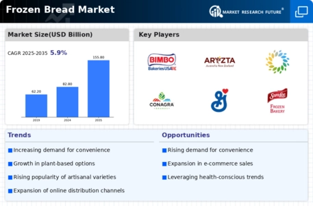 The Global Frozen Bread Market Industry is poised for substantial growth, with projections indicating a market size of 82.8 USD Billion in 2024 and an anticipated increase to 155.8 USD Billion by 2035. This growth trajectory suggests a robust expansion driven by various factors, including rising consumer demand for convenience foods and health-oriented innovations. The expected CAGR of 5.91% from 2025 to 2035 reflects the industry's potential to adapt to changing consumer preferences and market dynamics. Such projections underscore the importance of strategic planning and investment in the frozen bread sector to capitalize on emerging opportunities.