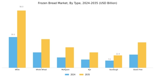 The Global Frozen Bread Market Industry benefits from technological advancements in freezing techniques, which enhance product quality and shelf life. Innovations such as flash freezing and improved packaging solutions help preserve the freshness and taste of frozen bread, making it more appealing to consumers. These advancements also reduce waste and improve inventory management for retailers, contributing to overall market efficiency. As technology continues to evolve, manufacturers are likely to adopt new methods that further enhance product offerings. This focus on quality and efficiency is expected to support the industry's growth trajectory in the coming years.